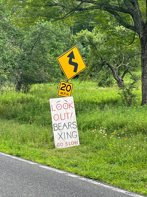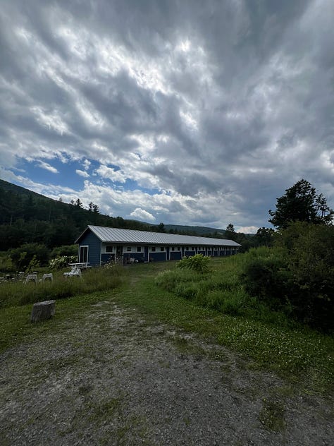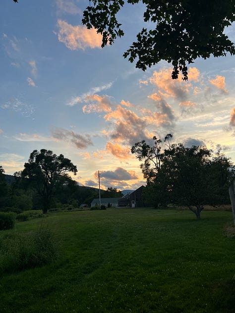 Actually, I’m not there anymore. I returned 24 hours ago. But for a few days it felt as though I landed somewhere else entirely. Slow-to-no wifi, open windows, maximum cross-breeze, fire pits, coffee, hammocks, trails, deer, a barn library, a bear, (another) snake at my door, views and sky. Sky, sky, sky like you wouldn’t believe: