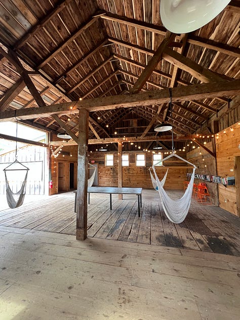 The warmth starts from the top and trickles down. Casey, the head innkeeper1, is the consummate gracious host. I love watching people do what they do well. I love learning about their personal history and how this all came to be and the daily tick-tock of making a place like this not only run, but sing. I anticipated the reading and writing, walking and exploring. I didn’t anticipate the specific delight of lucking into days with the other people who happened to choose this weekend too. Since I’ve been back, I’ve been saying it felt like adult camp. A few families with small kids, a few couples, a few solos like me. The walls are thin and it doesn’t take long to settle into the rhythm of co-living. Coffee and pop-tarts in the morning. Locals stop by for happy hour in the evenings. And as much or little as you want. I relish the cozy sensation of alone/together. When I was done socializing, I went back to my room and ate skittles while I worked. When I was sick of myself, I would talk with adults over cocktails or in a neighboring hammock. Or I could chat with the 5-year-old boy in room 3 about dinosaurs, New Jersey, ticks, books, and the yellow ball he lost.